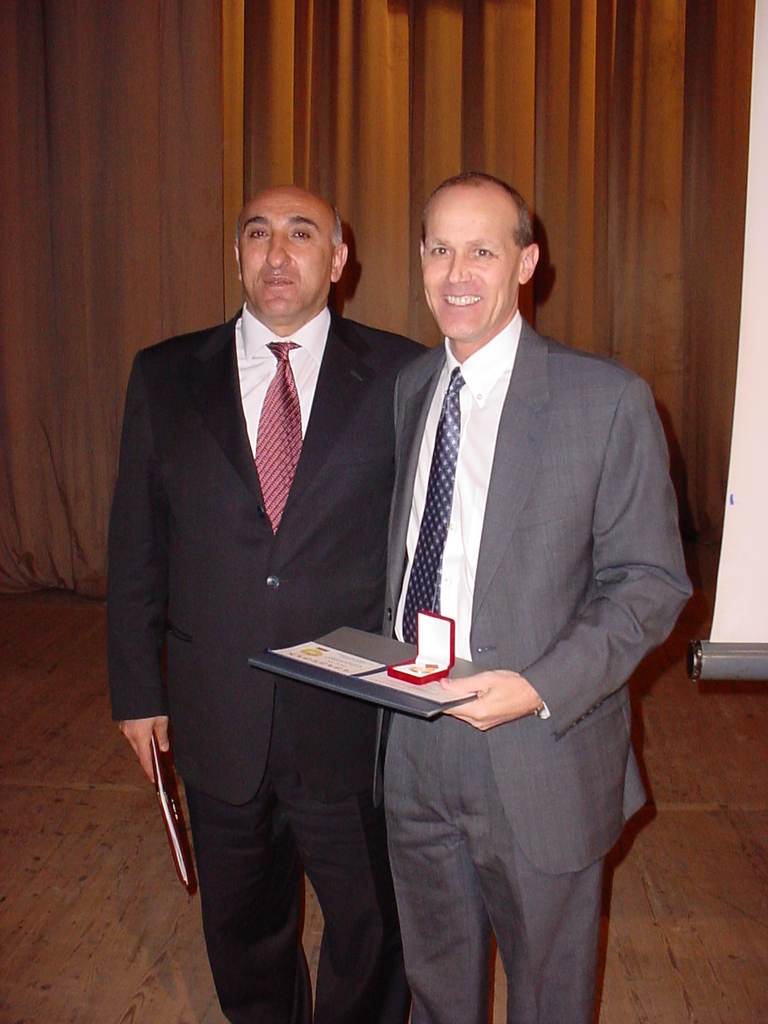 | Armenian Minister of Agriculture David Lokyan awarded Jeffrey Engels the Ministry's Gold Medal 'For Achievements in Agriculture', November 2005. From 2003 to 2005, Jeffrey served as the last Director of the United States Department of Agriculture's Marketing Assistance Project in Armenia. |